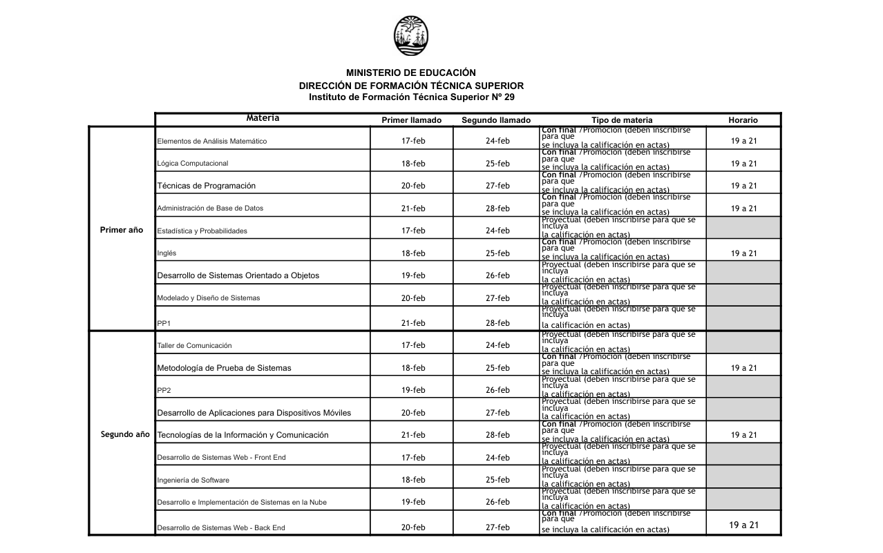 A continuación les compartimos los días y horarios de exámenes.
